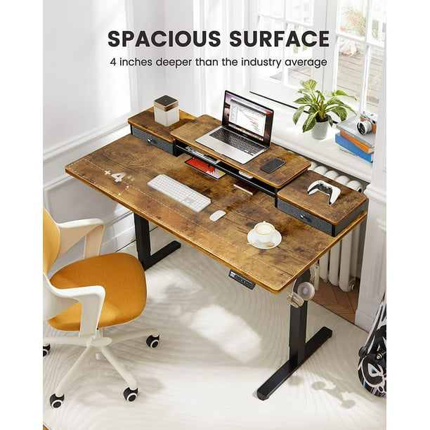 Electric Standing Desk with Double Drawers, 55x28 inch Adjustable Height Sit Stand Up Desk, Home Office Desk Computer Workstation with Storage Shelf, Vintage Brown - Walmart.com