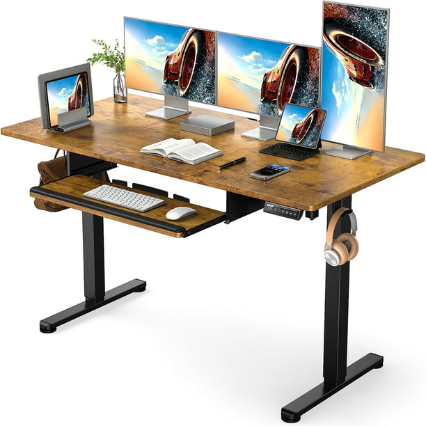 Electric Standing Desk with Keyboard Tray, Adjustable Height Sit Stand Up Desk, Home Office Desk Computer Workstation with Storage Shelf 55x28 Inches, Vintage Brown - Walmart.com