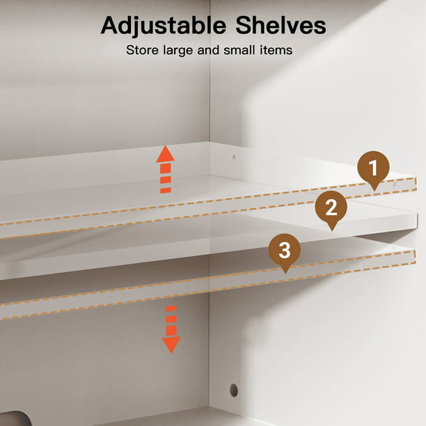 - Adjustable shelvesShelves are adjustable in 3 heights for flexible custom storage, easy to store your DVDs, X-box, high speakers, and game consoles.