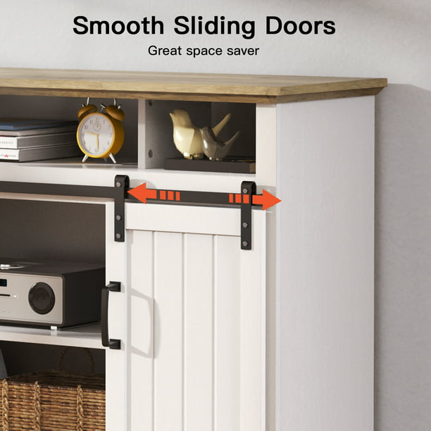 - FARMHOUSE BARN-DOOR DESIGNTV stand featured barn doors that slide easily. Perfect for modern farmhouse decor, adding beauty to your living room and a rustic atmosphere.