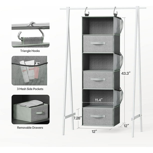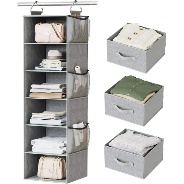 Hanging Closet Organizer and Storage, 6 Shelf Hanging Drawer for Closet, Hanging Shelf Organizer with 3 Removable Drawers Side Pockets, Hanging Closet Dresser for Bedroom Rack, Dark Gray - Walmart.com