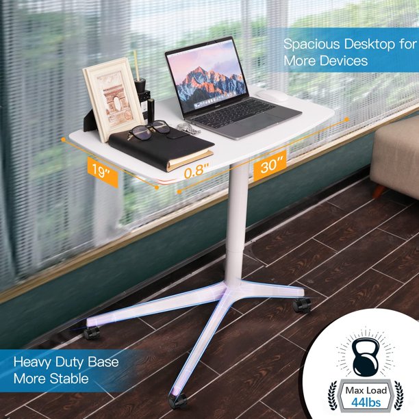 Height Adjustable Mobile Standing Desk, Laptop Desk with Gas Spring Riser, Stand up Desk Rolling Laptop Cart with Wheels for Offices, Home, Medical and School - Walmart.com