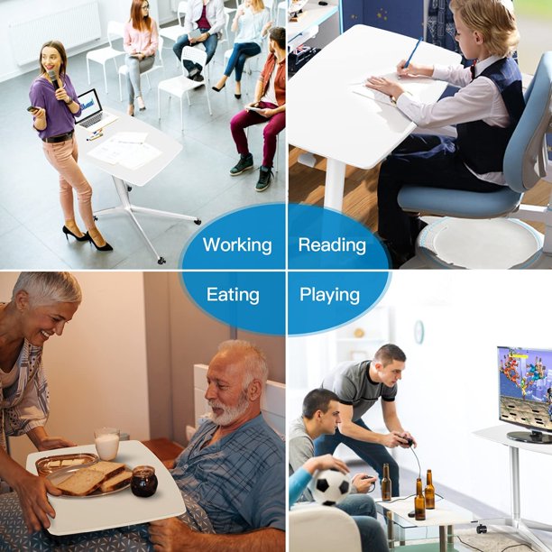 - EASY TO MOVE & SPACE-SAVING - Rolling laptop desk is equipped with 4 heavy-duty swivel casters ( 2 of which are lockable) to easily wheel it anywhere you like, it's an ideal portable workstation for any home or office! A low-profile base with smooth-rolling wheels eases and tuck beneath furniture minimum 3.5" high to save space.