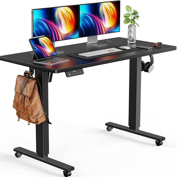 Electric Standing Desk Height Adjustable with Wheels Memory Computer Workstation Table with Splice Board for Home Office. Adjustable features which means you can move the desk to be in the perfect ergonomic position. Including 3 memory function buttons, plus up and down buttons, which is very convenient to lift and find the height that suits you best.