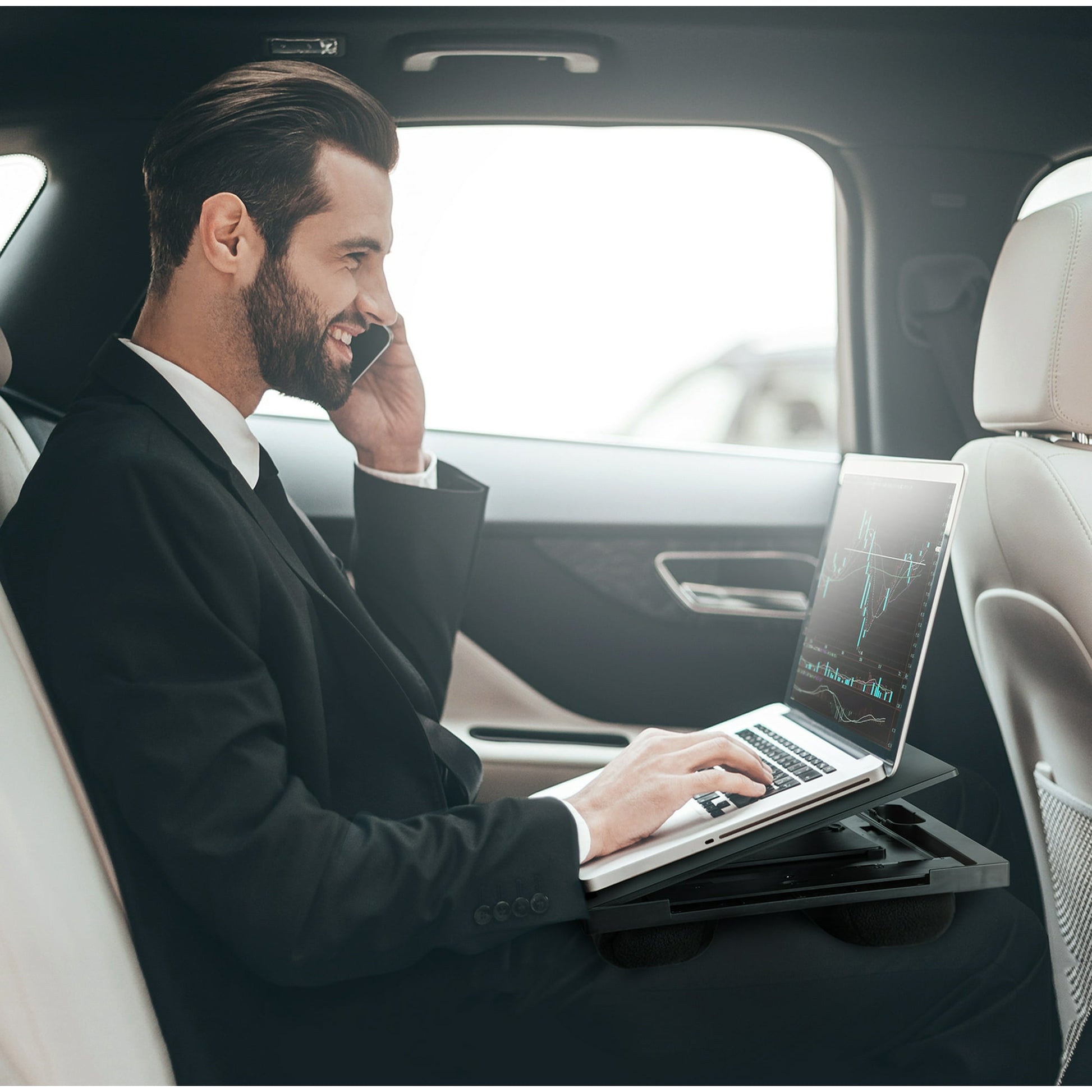 The adjustable platform measures 16.5” x 11.8” and is big enough to fit most 15.6” laptops.Can be used as a car laptop table, lap writing board, drawing table, bed lap table, etc.