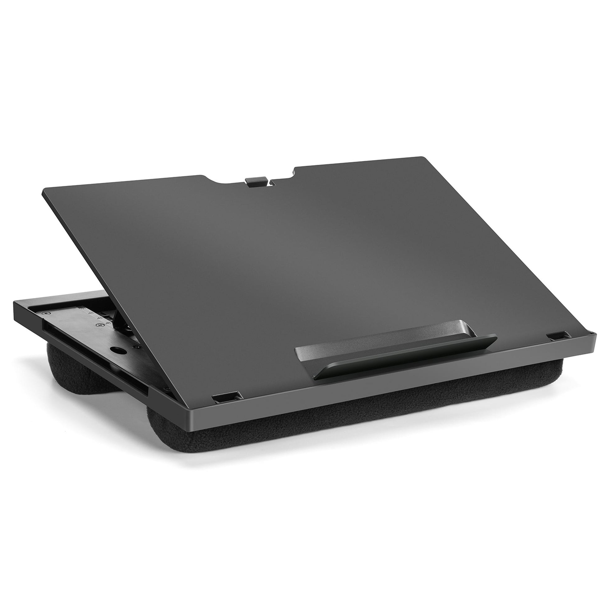 This lap desk has 2 soft cushions that mold to your knees to provide comfort and stability.
