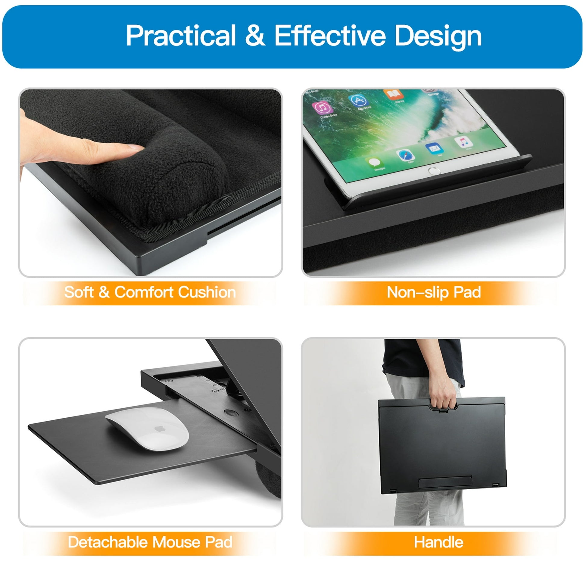 Portable Laptop Lap Desk Fits up to 15.6" with Detachable Mouse Pad Tray, 6 Adjustable Angles & Dual Cushions