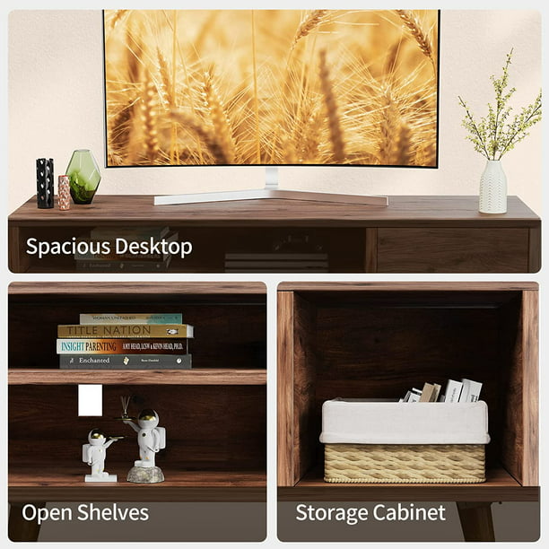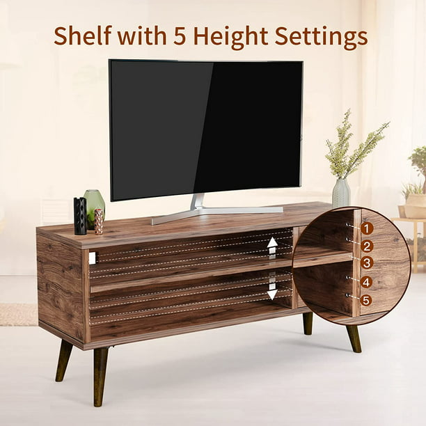 Retro TV Stand Unit with Storage Cabinet for TVs up to 55 inch, Mid Century Modern TV Entertainment Center for Media, Wooden TV Console Table for Living Room Bedroom, Walnut - Walmart.com