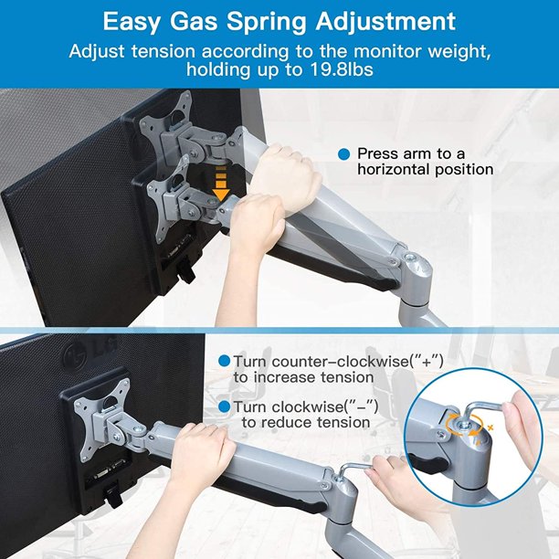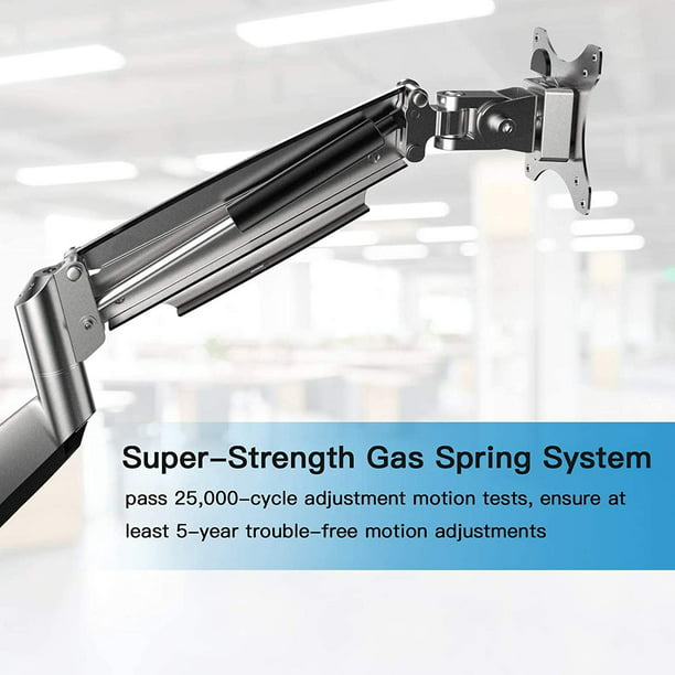 - HEAVY DUTY MONITOR MOUNT WITH FULL MOTION ADJUSTMENT - Made with high quality polished die-cast gas-springs for durability, our mount securely holds your monitor in place.